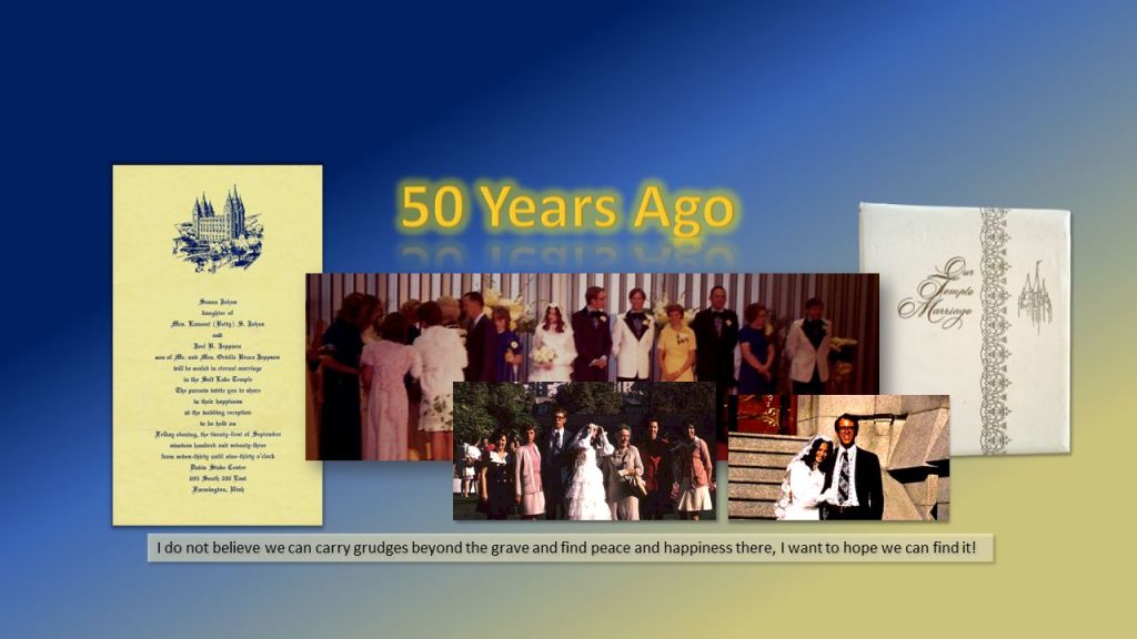 In September of this year, I was working on getting my Family History started when realized it was 50 years since my former wife Susan and I began this family with this wedding. The time of year being in Fall caused us to select Fall Colors for our decorations.