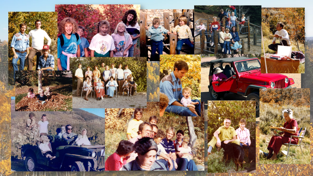 Since the early days of my youth clear blue skies, bright yellow leaves, crisp cool air, family picnics and trips into the mountains to gather Fall colors, are some of those sensory experiences that cause memories to surge to the present. Through the years of raising our family we continued to enjoy these traditions and more. Now twenty-two years after our family experienced the trauma of their mother’s and my divorce, and eight years ago their mother’s passing, I felt to recognize and acknowledge the fifty years, which have passed.